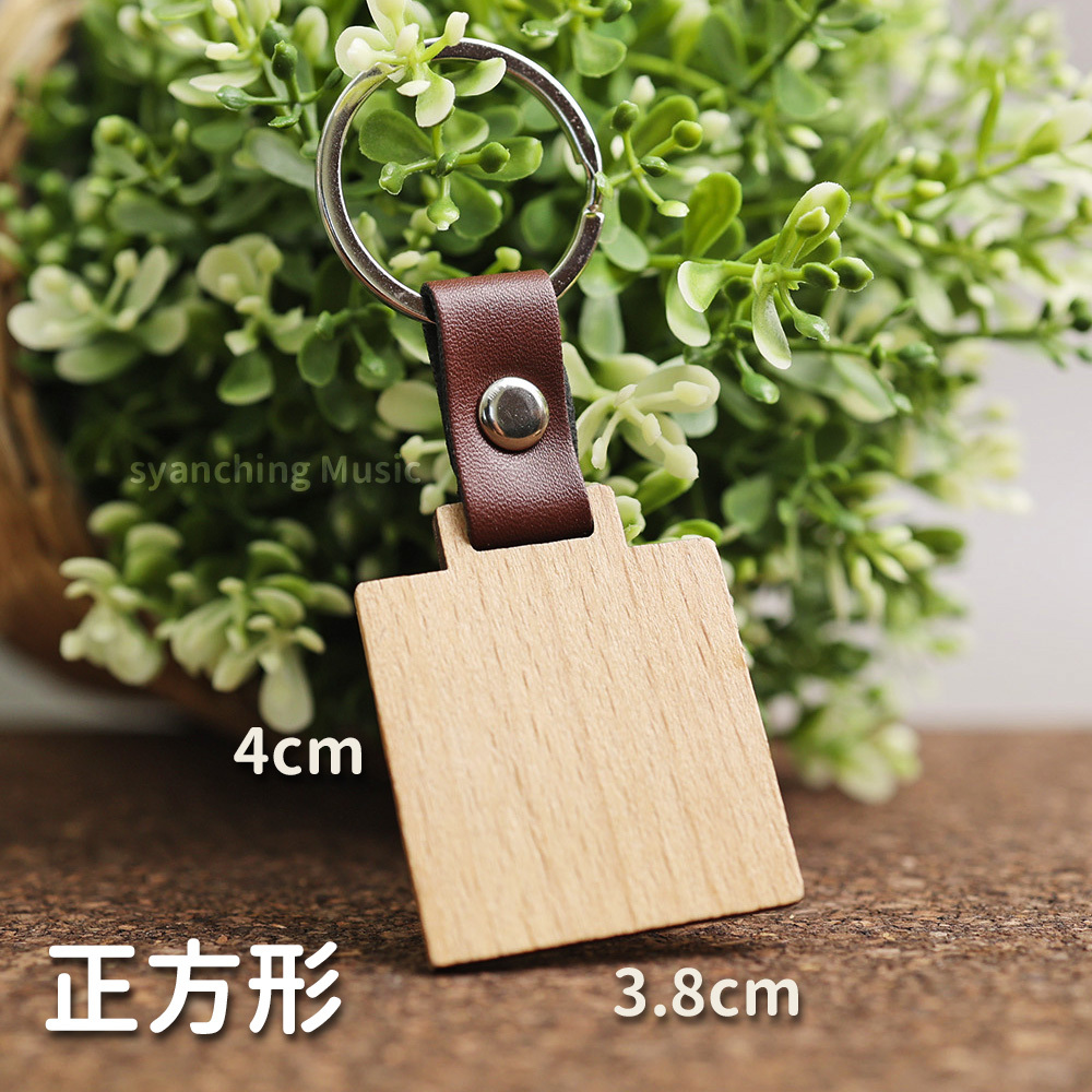 正方形 / 造型木牌皮革鑰匙圈