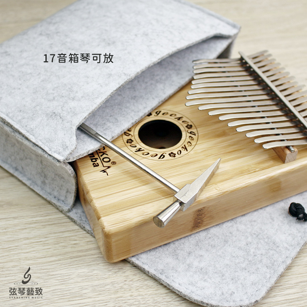 卡林巴毛氈琴包不想帶著厚厚的EVA拇指琴琴盒 你可以選擇 " 毛氈袋 " 高密度毛氈材質,品質好,輕巧又有質感 ! 隨身手拿、放在包包中都可以 !3mm厚度,可避免碰撞,用最輕盈的方式保護拇指琴 配件隔層設計,必免零件與琴身碰撞產生刮痕 ♦ 適用 17音箱琴、17音板式琴 ♦ 2種色彩 : 礦黑、雪灰 ♦ 尺寸 : 長 20 X 寬 14.5 X 高 6cm 一個毛氈袋 149元